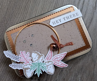 Ik heb het "Brushed Metallic" cardstock en het designpapier uit dezelfde collectie aan de bovenkant op de Tin/blikje geplakt.